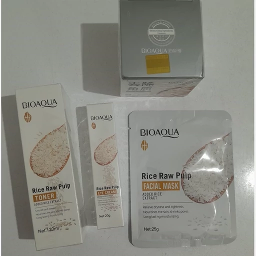 پک چهارعددی روتین پوستی برنج شامل : تونر ، اسکراب ، کرم دور چشم و ماسک ورقه ای