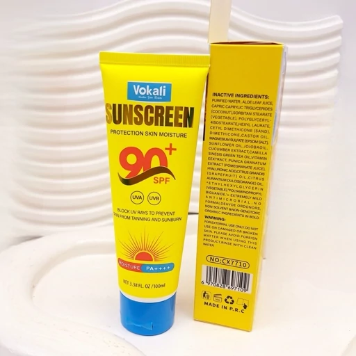 کرم ضد آفتاب صورت و بدن Vokali 💄 نوع محصول: کرم ضد آفتاب صورت و بدن🧴 SPF: 90💧 ویژگی: محافظت بسیار قوی در برابر UVA و UVB✨ اثر: جلوگیری از آفتابسوختگی و آسیبهای ناشی از آفتاب🛍 مناسب برای: استفاده روزانه و فعالیتهای بیرون از منزل🔹 مناسب برای: انواع پوست