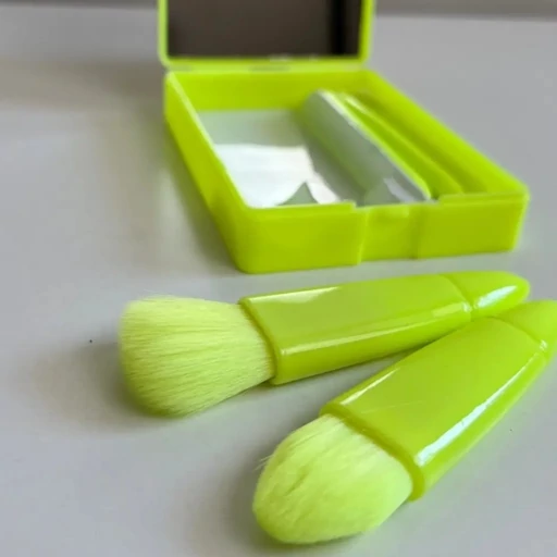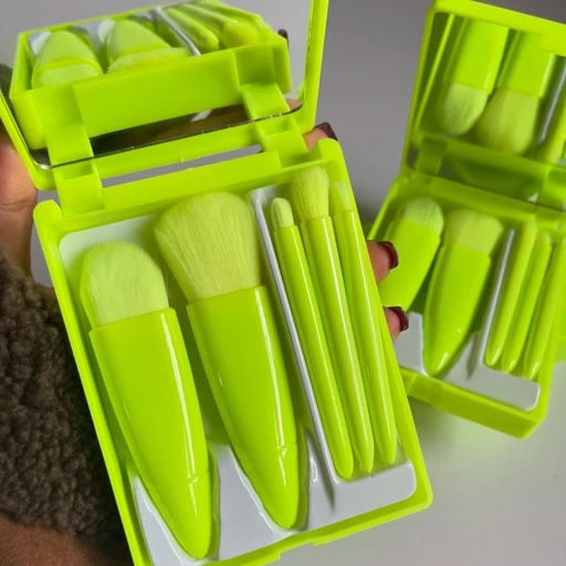 ست براش مینی مسافرتی 5 عددی جعبه دار آینه داررنگ فسفری باکیفیت و بدون ریزش