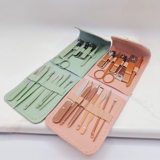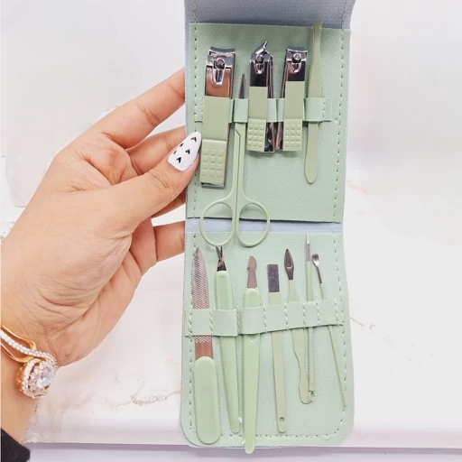 ست مانیکور و پدیکور همراه با کیف چرمی (12 تکه)با این ست دیگه خیلی کارت راحت میشه و میتونی خودت ناخوناتو درست کنی و مانیکور کنی😍کامل ترین ست مانیکور که با خودش یه کیف چرمی خوشگل داره و میتونید همیشه با خودتون همه جا ببریدش ، ضد زنگ با بهترين كيفيت بسيار زيبا محكم لاكچري مناسب ناخن های دست و پااین ست 12تکه کاربردی و عالی داره : ناخن گیر بزرگ،گوشه گیر ناخن ، سوهان، عقب زن کوتیکول،موچین انبری،ابزار تمیز کننده زیرناخن و …